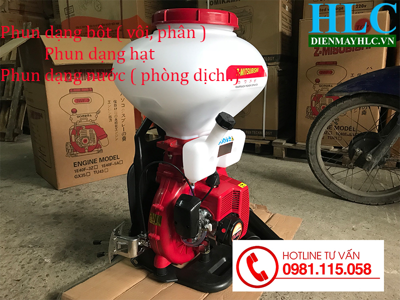 - Máy đa chức năng : cũng giống như máy phun thuốc trừ sâu kawasaki ah 2300, máy mitsubishi có thể phun dạng bột ( Vôi, Phân), dạng hạt ( hạt giống, phân bón…), dạng nước – phun sương, phòng dịch. Ngoài ra máy còn dùng để thổi lá…